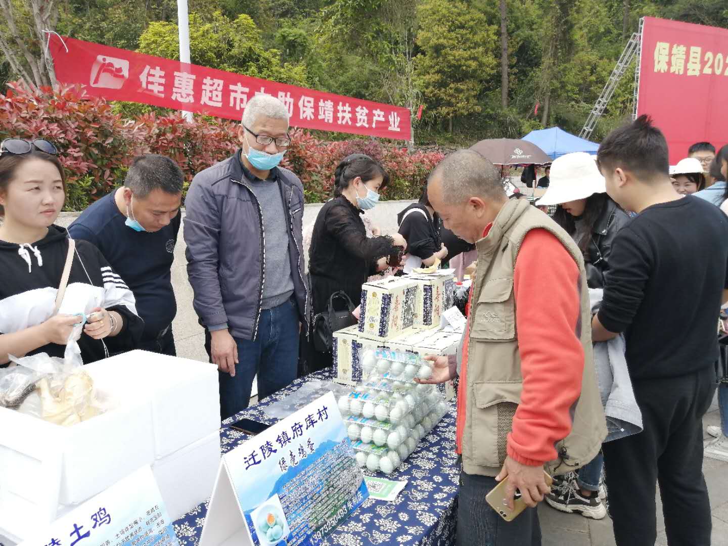 第一步便是養(yǎng)殖江漢綠殼雞,販賣綠殼土雞蛋?!傲窒伦匀环硼B(yǎng),生態(tài)自由采食,原生態(tài)富硒綠殼土雞蛋,1.5元/個,走過的路過的不要錯過啊……”這是朱利慶于“保靖縣2020年消費扶貧愛心認(rèn)購活動”上的推銷廣告詞。2020年4月9日,駐村工作隊又一次成功地把村集體經(jīng)濟,特色養(yǎng)殖——府庫綠殼土雞蛋推向了當(dāng)?shù)厥袌?,此次展銷會共現(xiàn)場銷售2720個雞蛋,村集體當(dāng)天收入4080元并與多家單位洽談了長期意向銷售。工作隊又購進8000羽綠殼蛋雞苗,以此進一步擴大養(yǎng)殖規(guī)格,帶動老百姓一起增收。