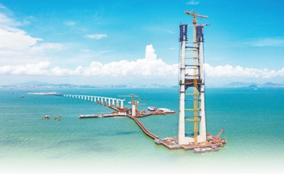 伶仃洋大橋東索塔施工現(xiàn)場。張政攝