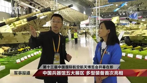 9月28日-10月3日,第十三屆中國(guó)國(guó)際航空航天博覽會(huì)在廣東珠海舉行,中國(guó)兵器工業(yè)集團(tuán)有限公司作為主辦單位閃耀亮相,推出裝甲突擊、火力打擊、智能彈藥、防空反導(dǎo)、無(wú)人裝備、非傳統(tǒng)安全、軍工軍技合作等領(lǐng)域新產(chǎn)品及成體系成建制武器系統(tǒng)和解決方案,全方位展示我國(guó)陸軍外貿(mào)武器裝備的最高水平以及雄厚的科技創(chuàng)新、自主研發(fā)與先進(jìn)制造能力,受到廣泛關(guān)注。 央視《新聞聯(lián)播》報(bào)道第十三屆中國(guó)航展,著重介紹了VT4主戰(zhàn)坦克,關(guān)注航展公眾日中國(guó)兵器館情況。9月28日下午央視《新聞直播間》航展特別節(jié)目《藍(lán)天盛會(huì)》邀請(qǐng)集團(tuán)公司訪談嘉賓做客直播間對(duì)中國(guó)兵器館兵器工業(yè)集團(tuán)展區(qū)等進(jìn)行1小時(shí)直播;9月28日下午、10月2日下午分別對(duì)地面裝備動(dòng)態(tài)表演進(jìn)行兩場(chǎng)直播。央視《朝聞天下》、《新聞直播間》、《共同關(guān)注》、《天下財(cái)經(jīng)》、《軍事報(bào)道》、《正午國(guó)防軍事》、《軍武零距離》等相繼推出集團(tuán)公司參展裝備的報(bào)道。