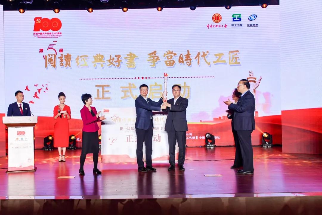 4月23日是第26個(gè)世界讀書(shū)日。在中華全國(guó)總工會(huì)指導(dǎo)下,全國(guó)工會(huì)職工書(shū)屋建設(shè)領(lǐng)導(dǎo)小組和中國(guó)兵器工業(yè)集團(tuán)有限公司共同舉辦了第五屆“閱讀經(jīng)典好書(shū) 爭(zhēng)當(dāng)時(shí)代工匠”全國(guó)工會(huì)職工書(shū)屋主題閱讀交流活動(dòng)暨“把一切獻(xiàn)給黨·勞動(dòng)創(chuàng)造幸福”全國(guó)職工黨史學(xué)習(xí)教育讀書(shū)活動(dòng)啟動(dòng)儀式。中華全國(guó)總工會(huì)黨組書(shū)記、副主席、書(shū)記處第一書(shū)記陳剛出席活動(dòng)并講話,中國(guó)兵器工業(yè)集團(tuán)有限公司黨組書(shū)記、董事長(zhǎng)焦開(kāi)河致辭。陳剛向焦開(kāi)河傳授活動(dòng)火炬。全國(guó)總工會(huì)黨組成員、經(jīng)費(fèi)審查委員會(huì)主任、全國(guó)工會(huì)職工書(shū)屋建設(shè)領(lǐng)導(dǎo)小組組長(zhǎng)李曉鐘,全國(guó)總工會(huì)兼職副主席高鳳林,中國(guó)兵器工業(yè)集團(tuán)有限公司黨組副書(shū)記周艦出席活動(dòng)。